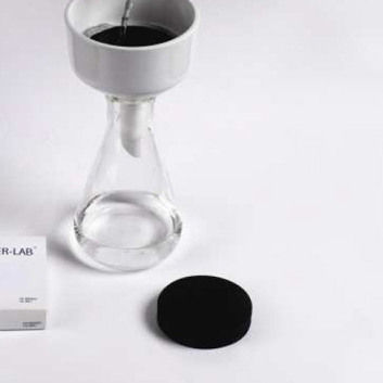 Un papel filtro teñido de color negro, especialmente indicado para la retención y posterior visualización de partículas de color claro, por contraste. Por ejemplo, con algunos compuestos del flúor y siliconas.
