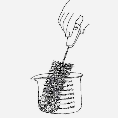 Escobilla de fibra con cepillo de polietileno en su extremo, útil para la limpieza de matraces, jarras de cultivo y frascos en general.