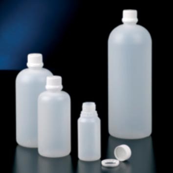 Translúcidas en polietileno de alta densidad, con tapón precinto en PP a rosca y obturador en polietileno de baja densidad, pensadas para contener alcohol.