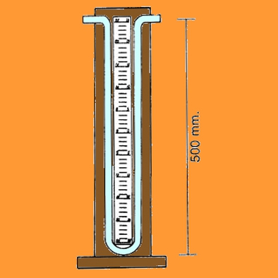 Manómetro en -U- para líquidos o mercurio, escala 250-0-250 m/m.