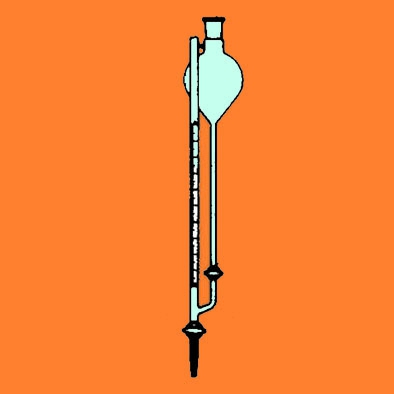 Bureta 50ml. 1/10, con depósito 600ml., con franja, llave vidrio, clase A Error máximo: +/- 0.05ml. Fabricado en vidrio borosilicato Duran. Clase A. Referencia: 505400 Marca: Alamo « Volver