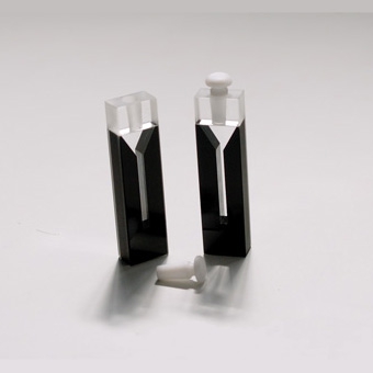 Cubeta vidrio óptico micro, caras negras, 10mm. paso de luz, volumen 0,50ml. con tapón PTFE.