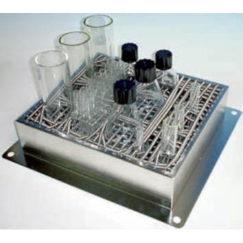 Bandeja universal con tensores elasticos, para mod. 200D Bandeja Universal con tensores elásticosque permiten sujetar toda clase de vasos, matraces, frascos, tubos, pequeñas gradillas, etc... Para modelos 200D. Medidas: 370 x 300 x 75 mm. Referencia: 5312118 Marca: Ivymen « Volver
