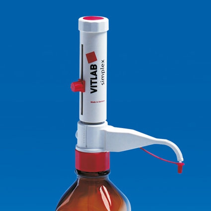 Debido a que los materiales en contacto con los medios (PTFE, PFA, FEP, vidrio borosilicato y platino-iridio) son resistentes a la mayoría de los ácidos, disolventes y bases, los dosificadores acoplables a frascos de VITLAB® simplex son aplicables de forma casi universal.